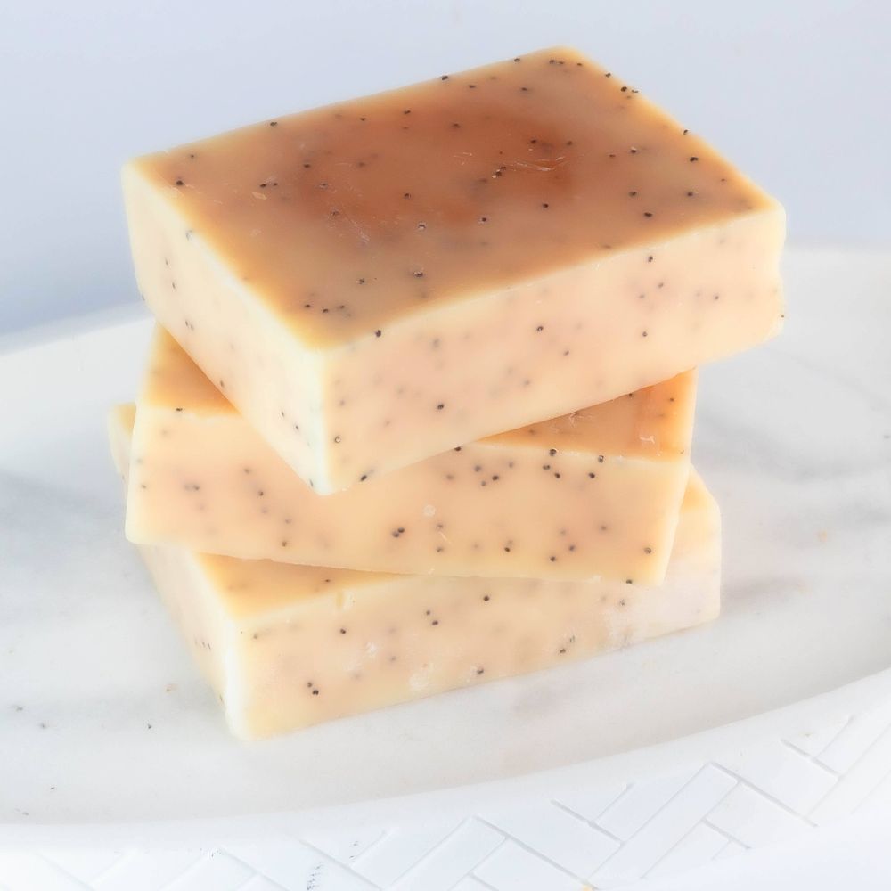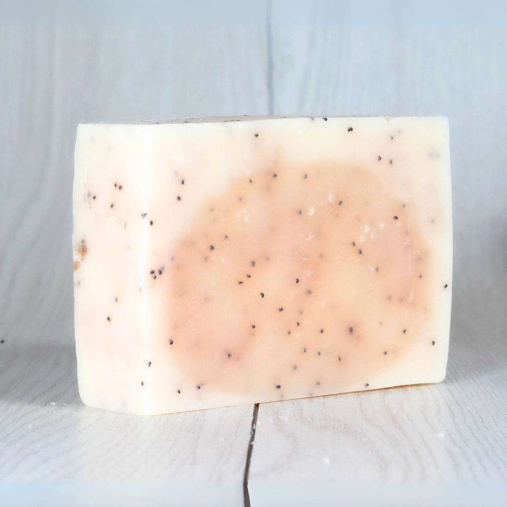 The lovely citrus scent is refreshing and uplifting! Poppyseeds serve as a natural exfoliant to slough away dead skin. Feel clean and polished with this indulgent soap experience.